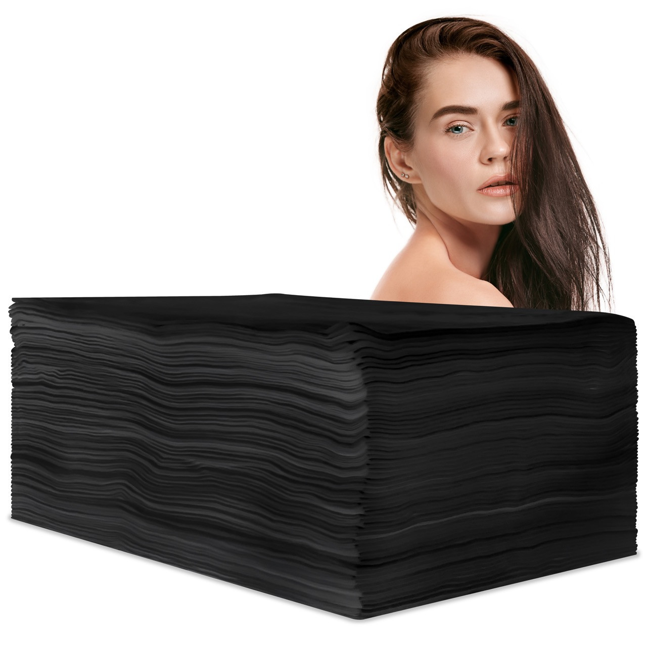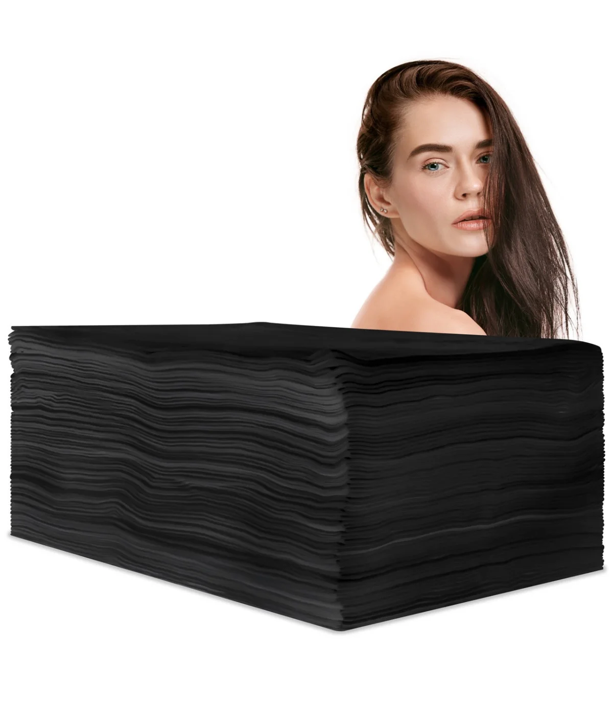 These towels are black, a very elegant colour that disguises stains. They have the perfect size to work with them comfortably. Made from cross weave, these spunlace towels are designed to prevent warping during use, without shedding or linting.
