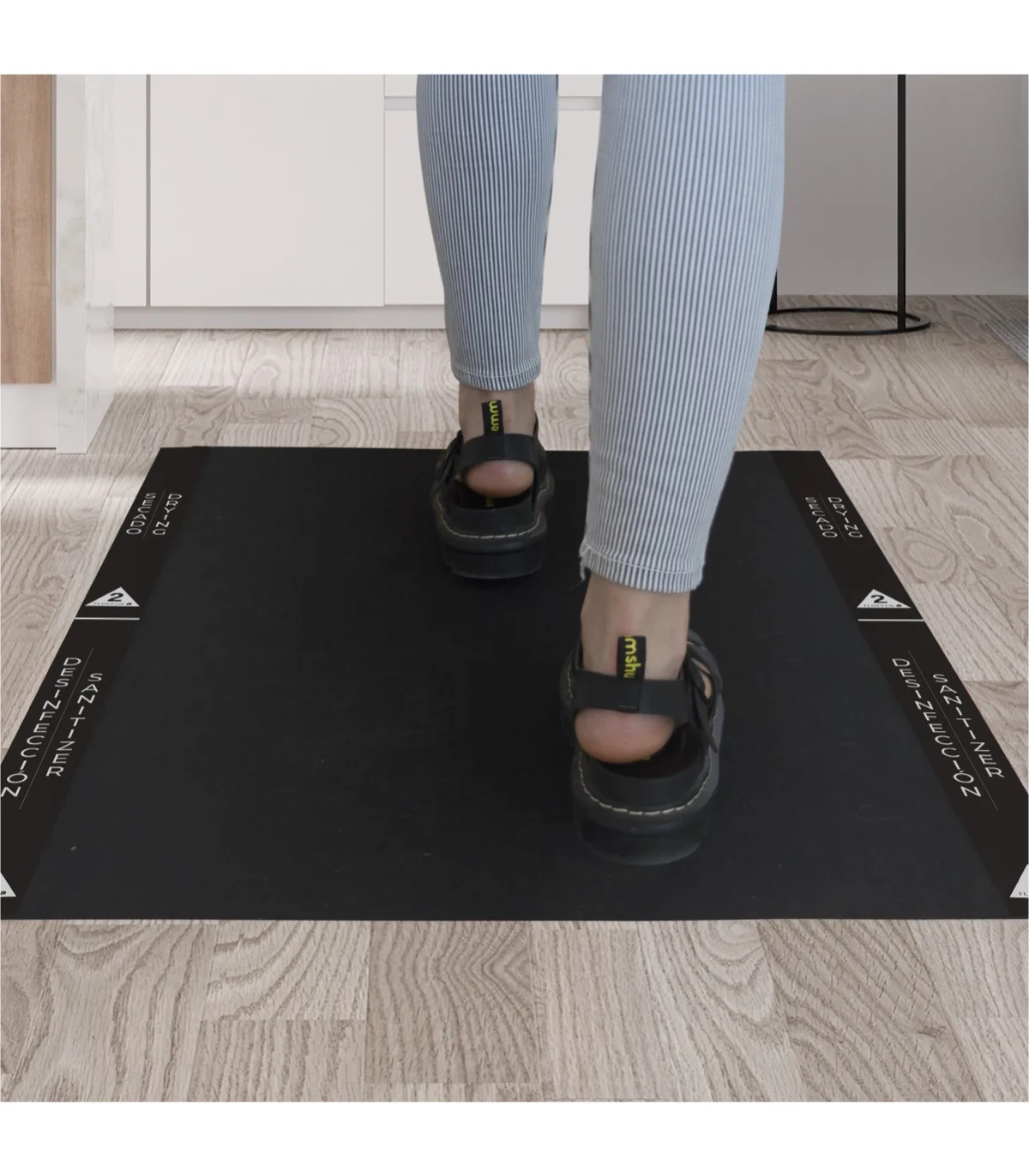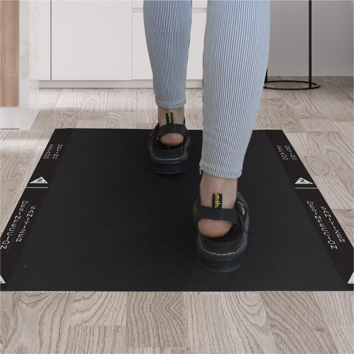 - Colocar una cinta o precinto en la alfombra de manera horizontal para evitar que se mueva la alfombra o levante por el calzado (no se suministra con este Kit)