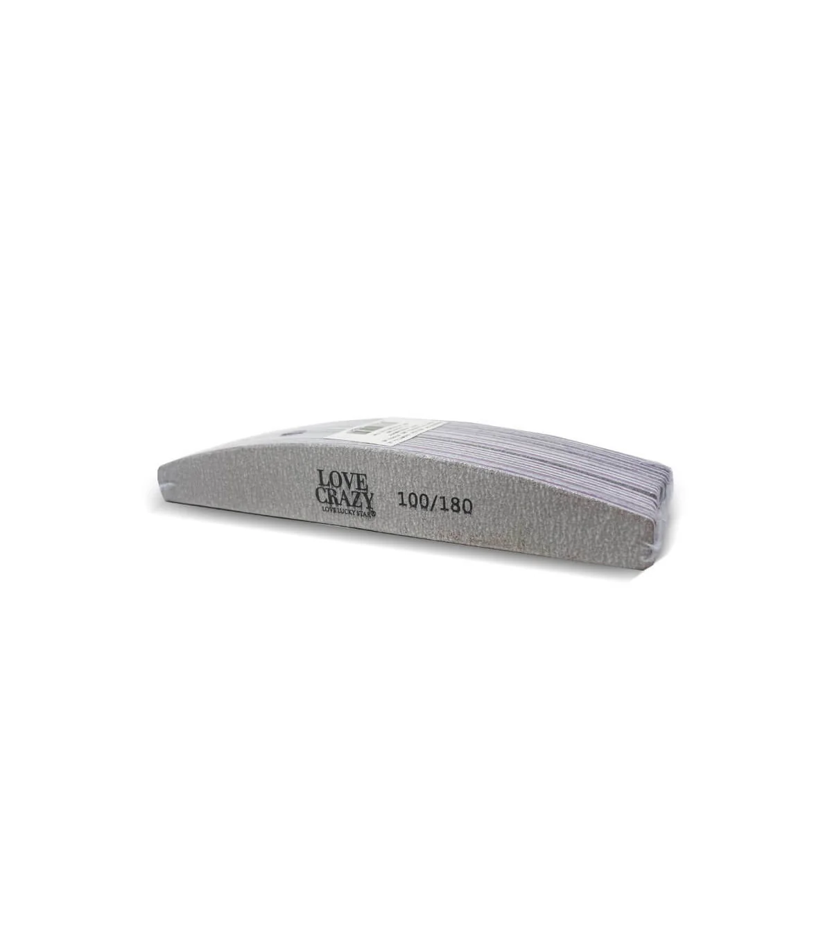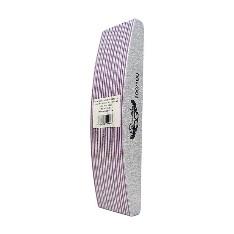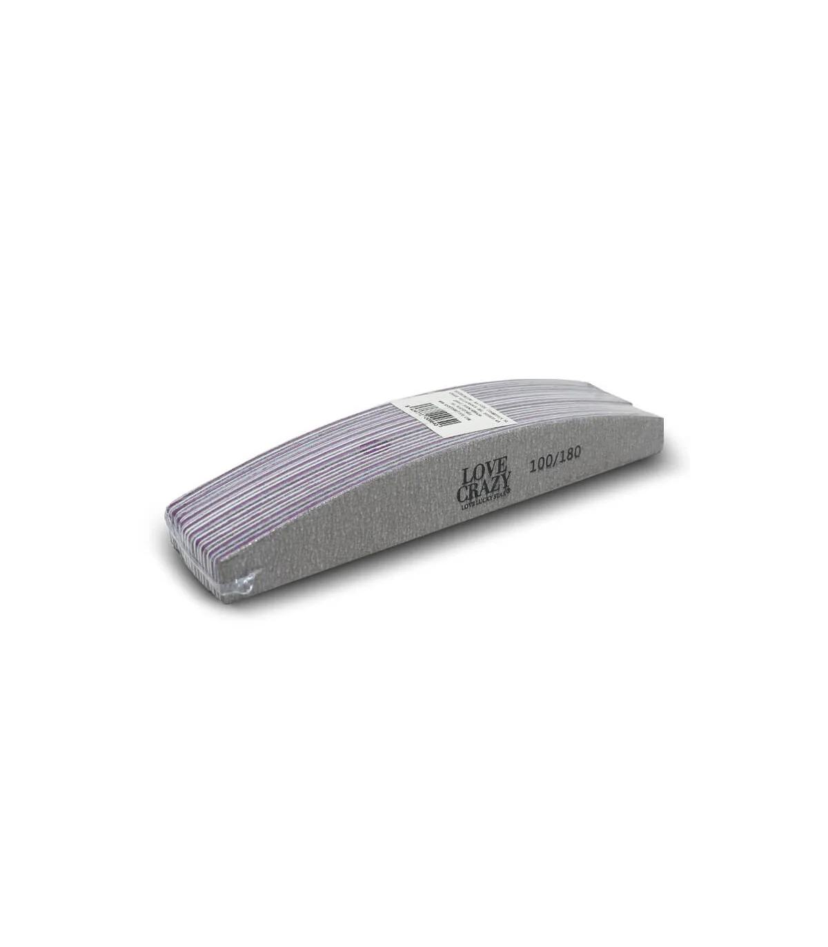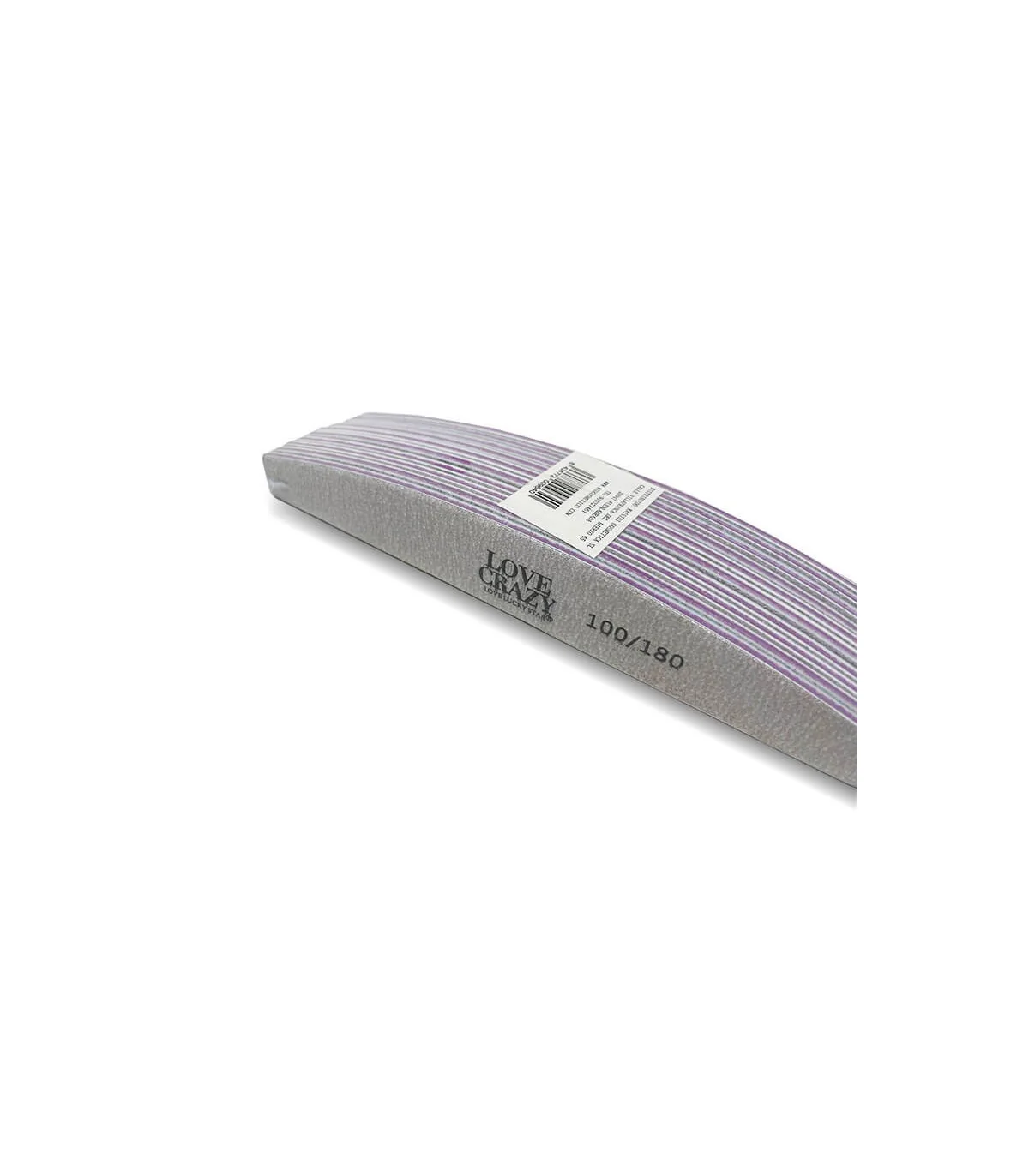 Lima de uñas profesional con gramaje 100/180 para un limado perfecto y duradero. Pack de 10 unidades, ideal para uso frecuente en salones de belleza y manicuras caseras.