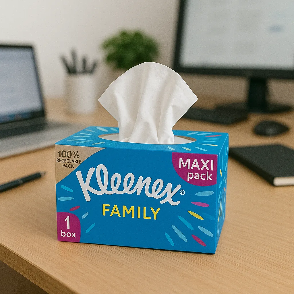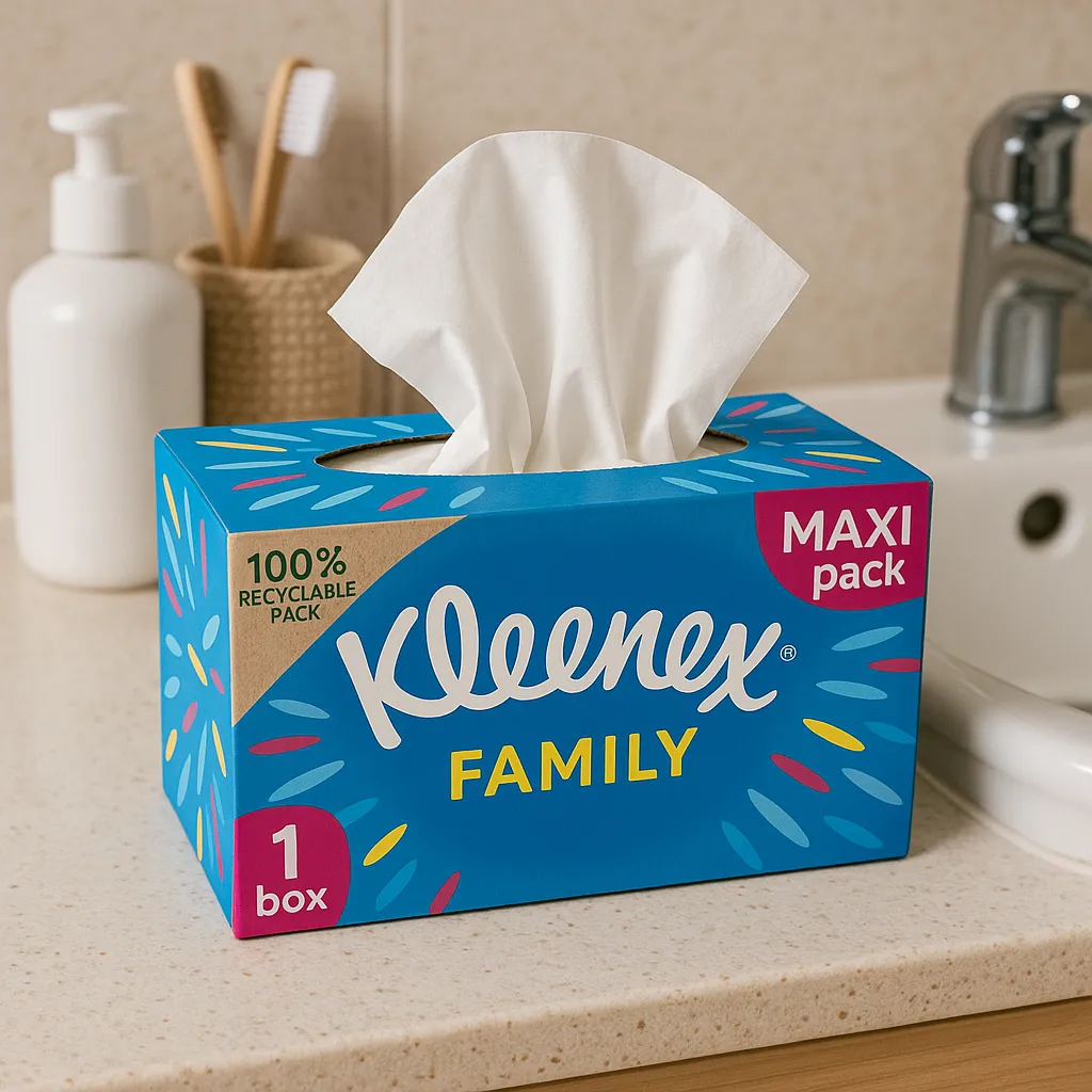 Kleenex Family combina la máxima suavidad con la resistencia que necesitas en tu día a día. Ideal para el hogar, la oficina o cualquier espacio compartido. Porque cuando te cuidas, todo fluye mejor.