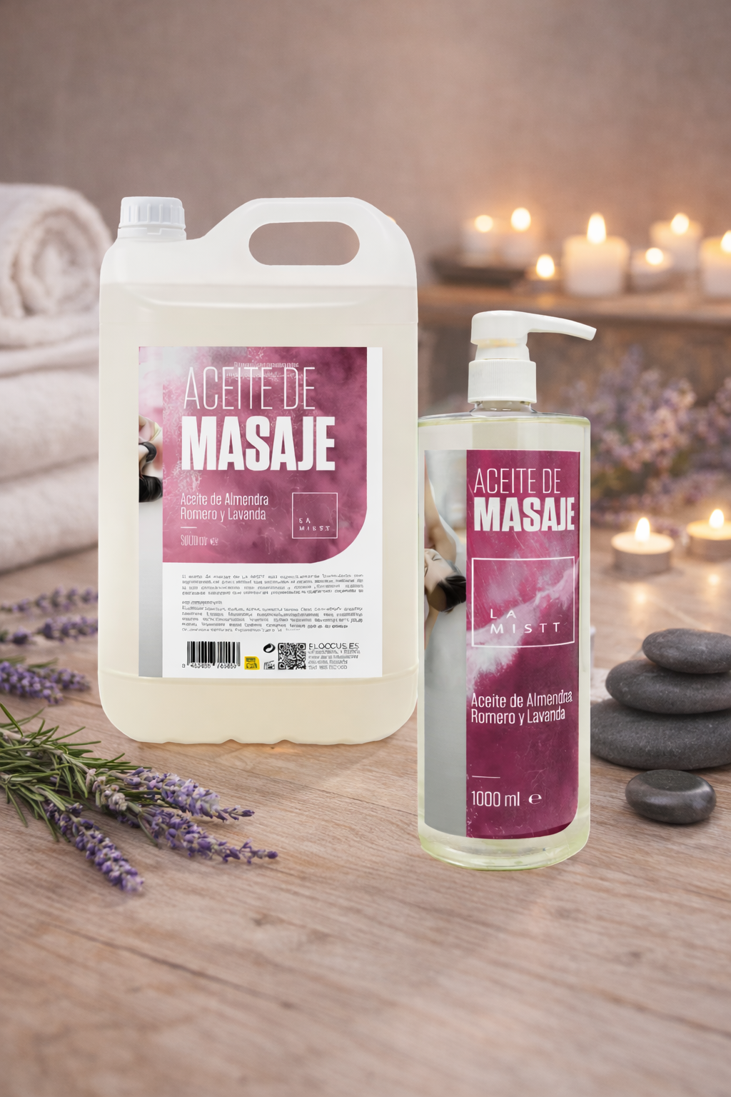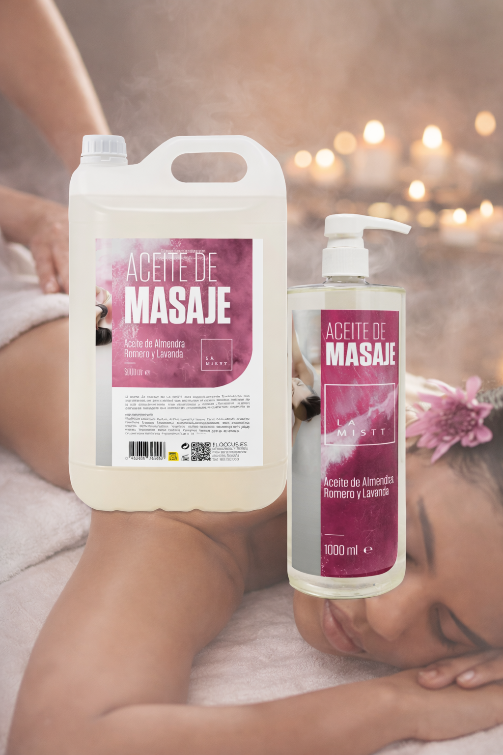 Pack profesional de aceites de masaje con fórmula mejorada para tratamientos corporales en centros de estética y bienestar. Combina aceite de almendras, romero y lavanda para una aplicación fluida, nutritiva y aromática en cabina.