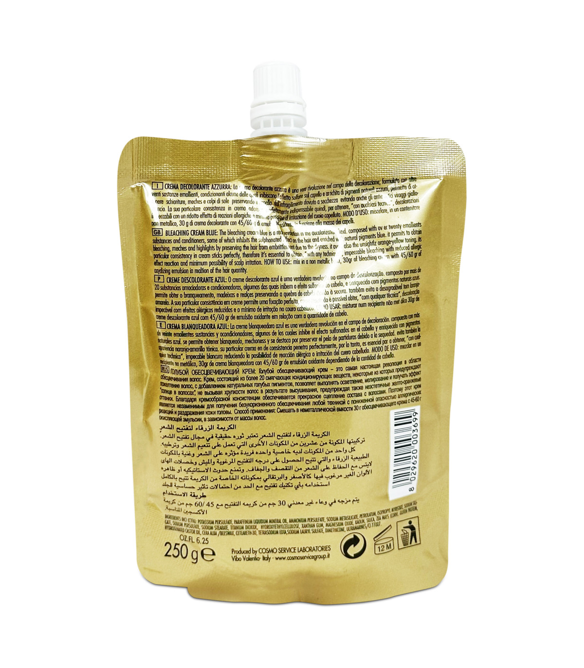 C’est une véritable révolution dans le domaine du blanchiment. La crème décolorante bleue est enrichie en pigments bleus et évite l’aspect jaune orangé.